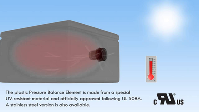 Kondenswasser bildet sich schnell in besonders dichten Gehäusen, da Luftfeuchtigkeit nicht entweichen kann. Schwitzende Gehäuse gibt es vor allem an Orten mit wechselnden Temperaturen. Auch Temperaturschwankungen im Inneren von Gehäusen führen zur Kondenswasserbildung - je öfter, umso schädlicher für die Geräte. Kurzschlüsse können ebenso die Folge sein, wie ein kompletter Geräteausfall durch den Wegfall des IP-Schutzes. Mit einem leicht zu montierenden Element, das in den meisten Fällen mit einer gasdurchlässigen und hydrophoben sowie oleophoben Spezialmembranfolie ausgestattet ist, kann ein entsprechender Druckausgleich geschaffen werden.